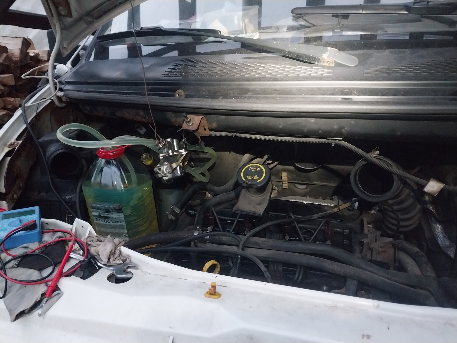Вот такая канистра с трубками. И насос снизу может резонатор надо поставить на место?Добавлено (03.11.2025, 19:16) --------------------------------------------- Грел ОЖ, на обогревателе стоит бутыль с трубками. Соляра 23*. По 2 раза каждую трубку на форс. откручивал. Мне, кажется, фонтанчик появился. Понемногу из обратки идёт воздух, мелк. пузырьки. Совсем мало. Чуть-чуть не хватает завестись. Где-то что-то не даёт. Сел аккумулятор :-( . Оставляю до завтра.